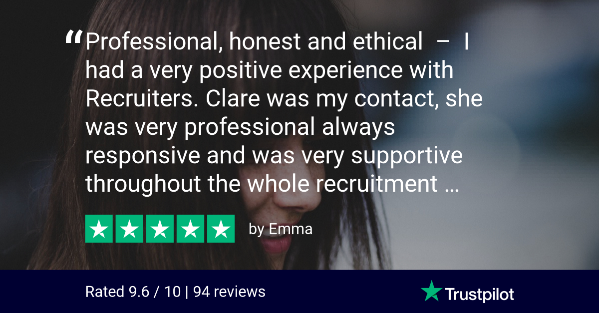 RECRUITERS are proud to be Ireland’s highest rated recruitment consultancy in Ireland on Trustpilot - the world’s largest independent service review site. You can read all of our service reviews here.